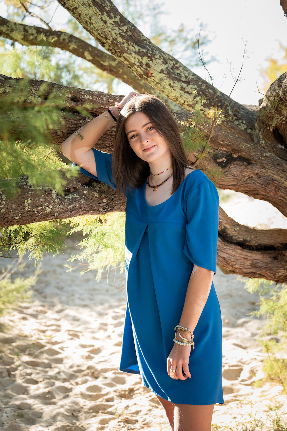 coupe asymétrique pour le bas de robe et bas de manches